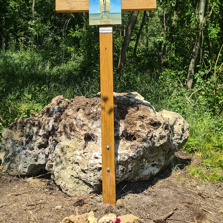 Herr Engelbert Freudenschuss, der schon für die alten Bilder verantwortlich zeichnete, setzte das Thema in gleicher Weise um, schlug aber eine Emailtechnik vor, die größere Dauerhaftigkeit verspricht und eine intensivere Farbigkeit der Bilder bedingt. Die Stadtgemeinde Waidhofen übernahm die Kosten, Fa. Schauppenlehner aus St. Leonhard gravierte und schenkte die Schildchen für die Stationsbezeichnungen. Die ersten beiden Stationen mussten nach der Errichtung der neuen Forststraße neu aufgestellt werden, was Familie Hochbichler vom Untergrasberg auf eigene Kosten bewerkstelligte.