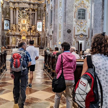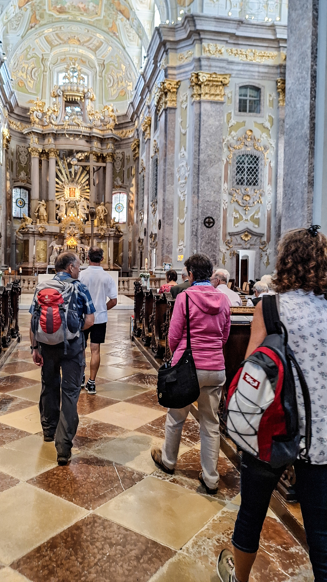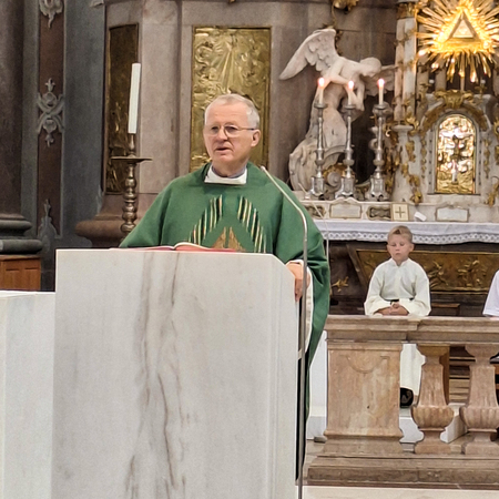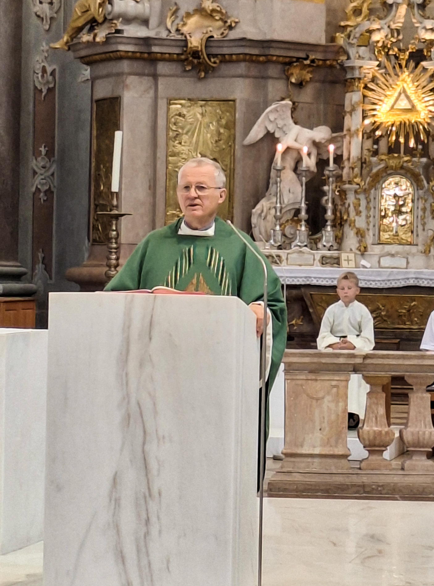 Um 10:30 Uhr zelebrierte Stadtpfarrer Mag. Herbert Döller in der Basilika eine feierliche Messe, an der neben den Fußwallfahrern auch zahlreiche weitere Pfarrangehörige teilnahmen.