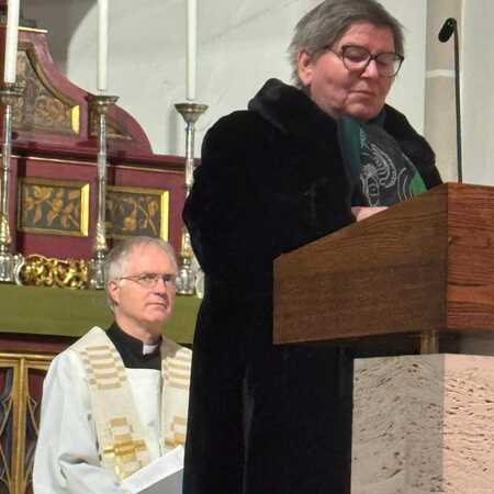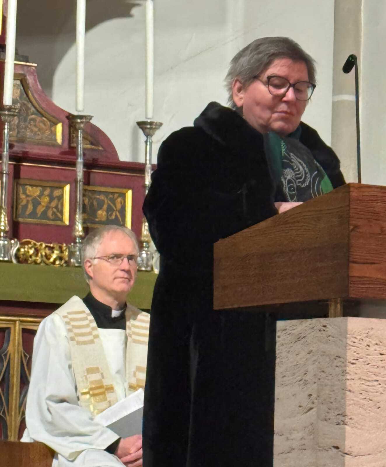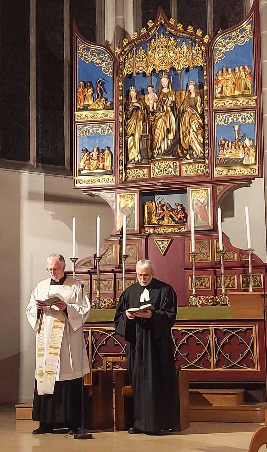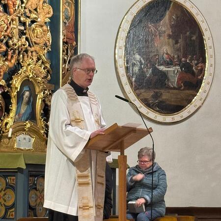 Das Evangelium für die Predigt war aus Johannes Kap. 20 Vers24-29, die Stelle wo der ungläubige Thomas beim Treffen der Jünger und Jesus, die Narben Jesus berührte und dann erst glaubt, an den Auferstandenen. Pfarrer Siegfried Kolck-Thudt vergleicht uns in seiner Predigt, mit Thomas und bezeichnet uns als ThomaseInnen in der heutigen Zeit, die aus verschiedensten Gründen glauben und nicht glauben und den Kirchen fernbleiben. Es ist ein schwieriger Prozess mit dem wir mit Geduld gehen müssen um eine gemeinsame Zukunft zu haben. Daher sollten wir–uns zur Zusammenarbeit bemühen, damit wir wo es Unterdrückung, Leid und Ungerechtigkeit gibt sie verhindern –mit Hoffnung in eine Welt, die von Streit und Zwietracht geplagt ist gehen und vertrauen sähen -das der Verstand, mit den unübersehbaren Forschungen, Glaube und Vertrauen zu einer gemeinsamen, friedvollen und lebenswerten Welt führt.