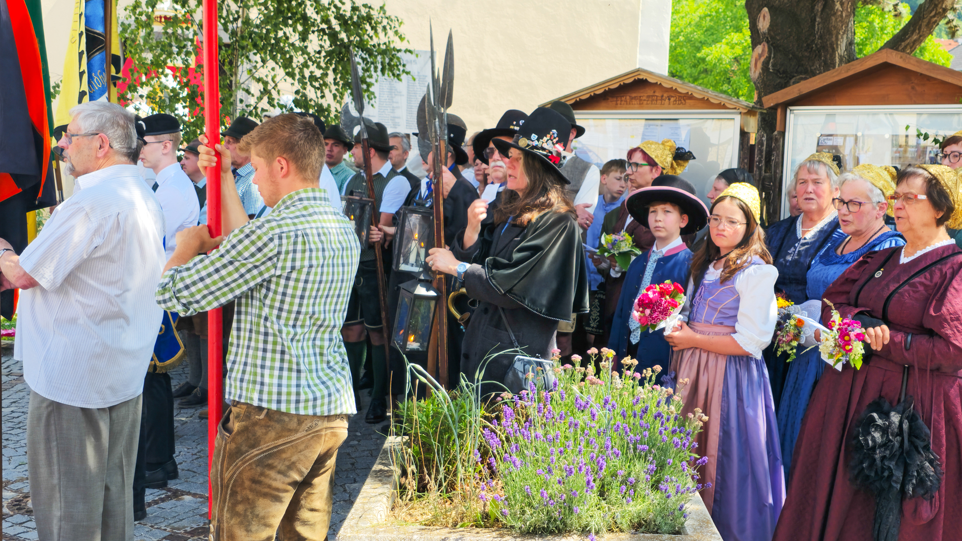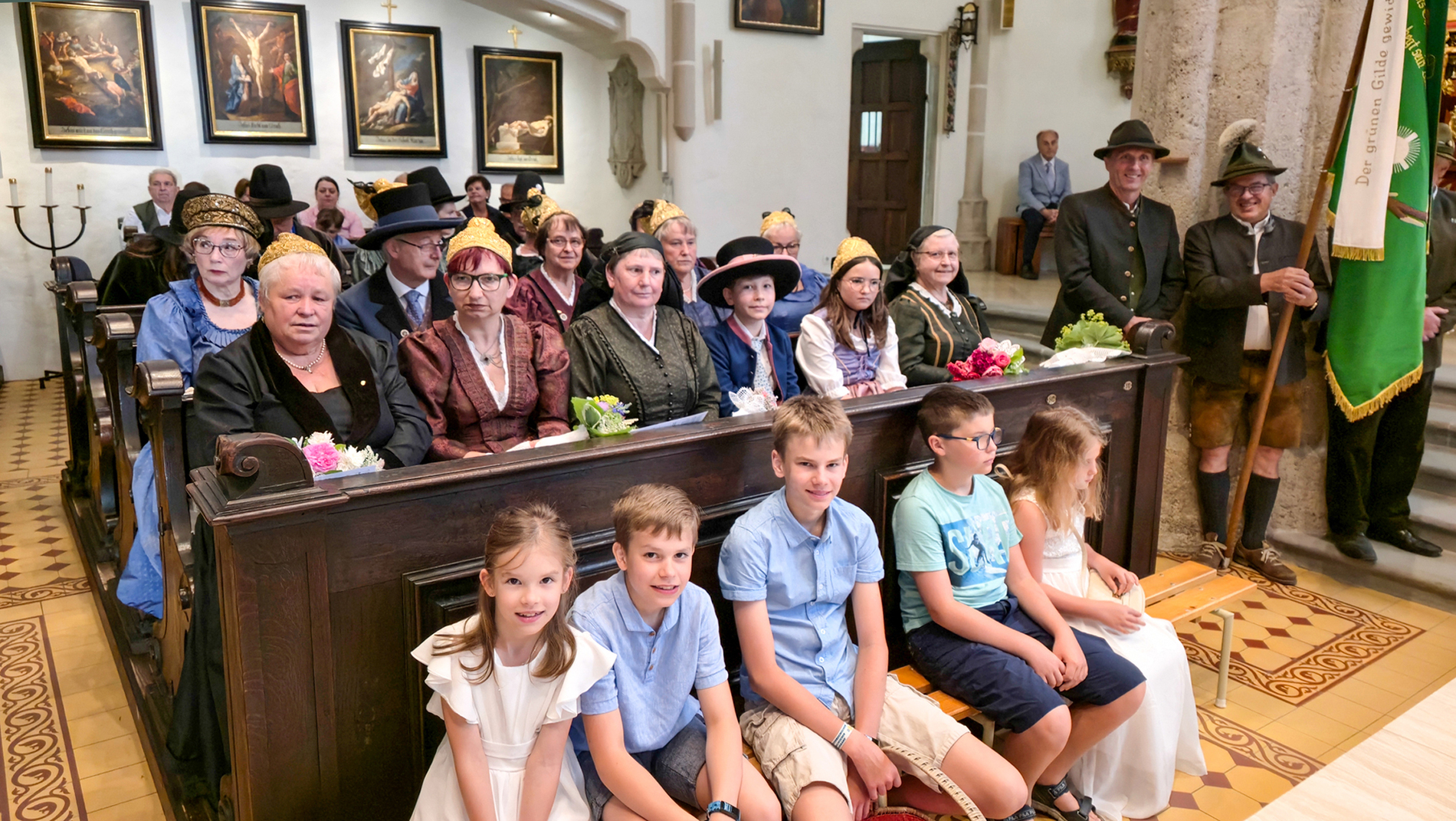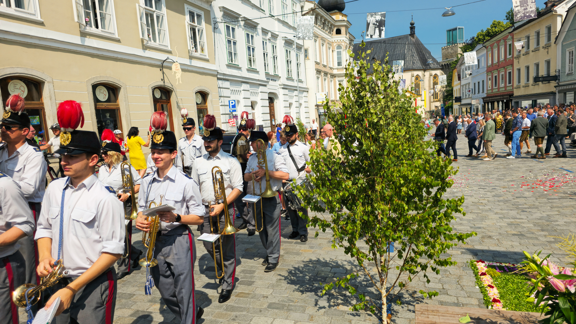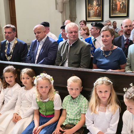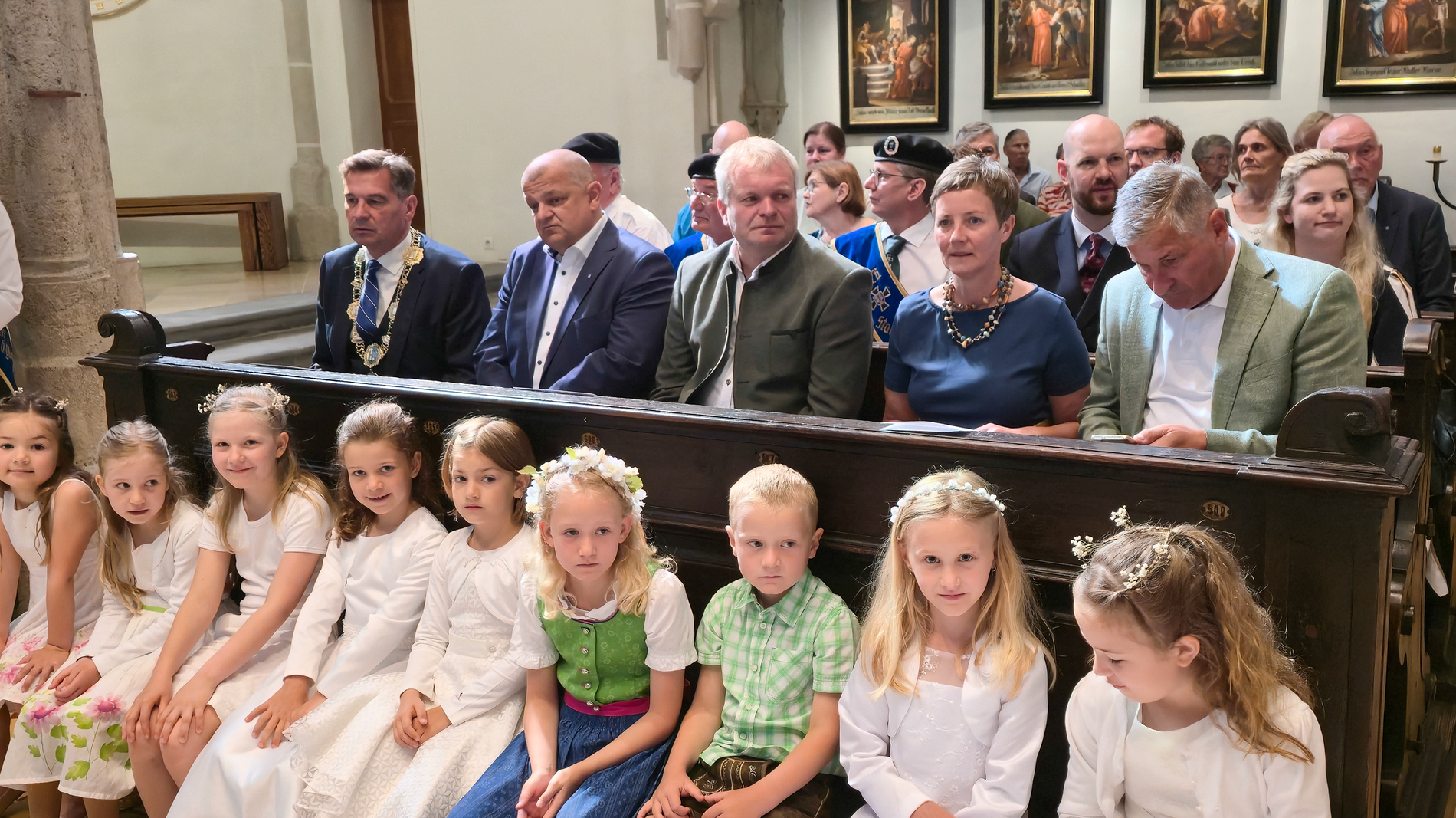 Zahlreiche Gläubige versammelten sich in der Stadtpfarrkirche und bildeten eine große, lebendige Feiergemeinschaft. Auch die politische Gemeinde war mit vielen Vertreterinnen und Vertretern anwesend, angeführt von Bürgermeister Werner Krammer. Darüber hinaus nahmen zahlreiche Pfarrgemeinderäte aus beiden Pfarren an der Feier teil. Die Goldhaubengruppe sowie Abordnungen der Jägerschaft, der Zimmerleute, der Bauernschaft, des Kolpingvereins, die Nachtwächter, der Kammeradschaftsbund und weiterer örtlicher Vereine verliehen der Feier mit ihren festlichen Trachten und prächtigen Fahnen besonderen Glanz.