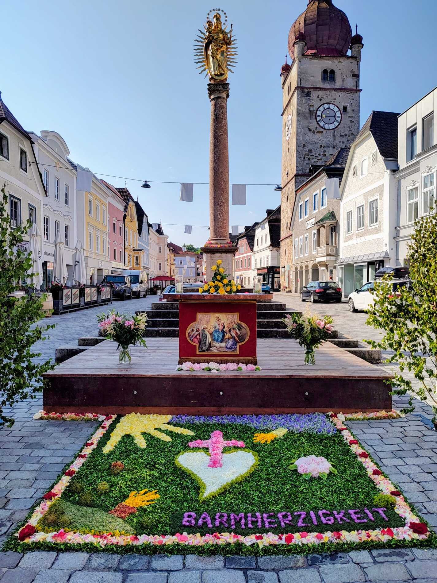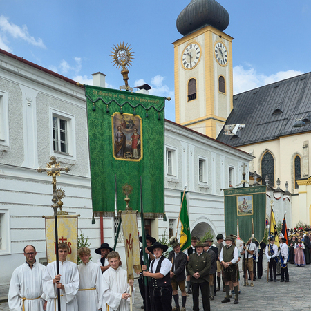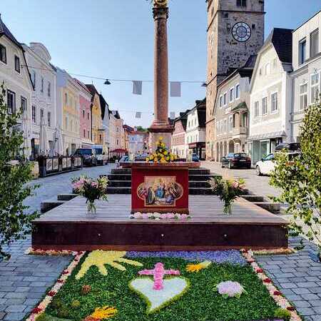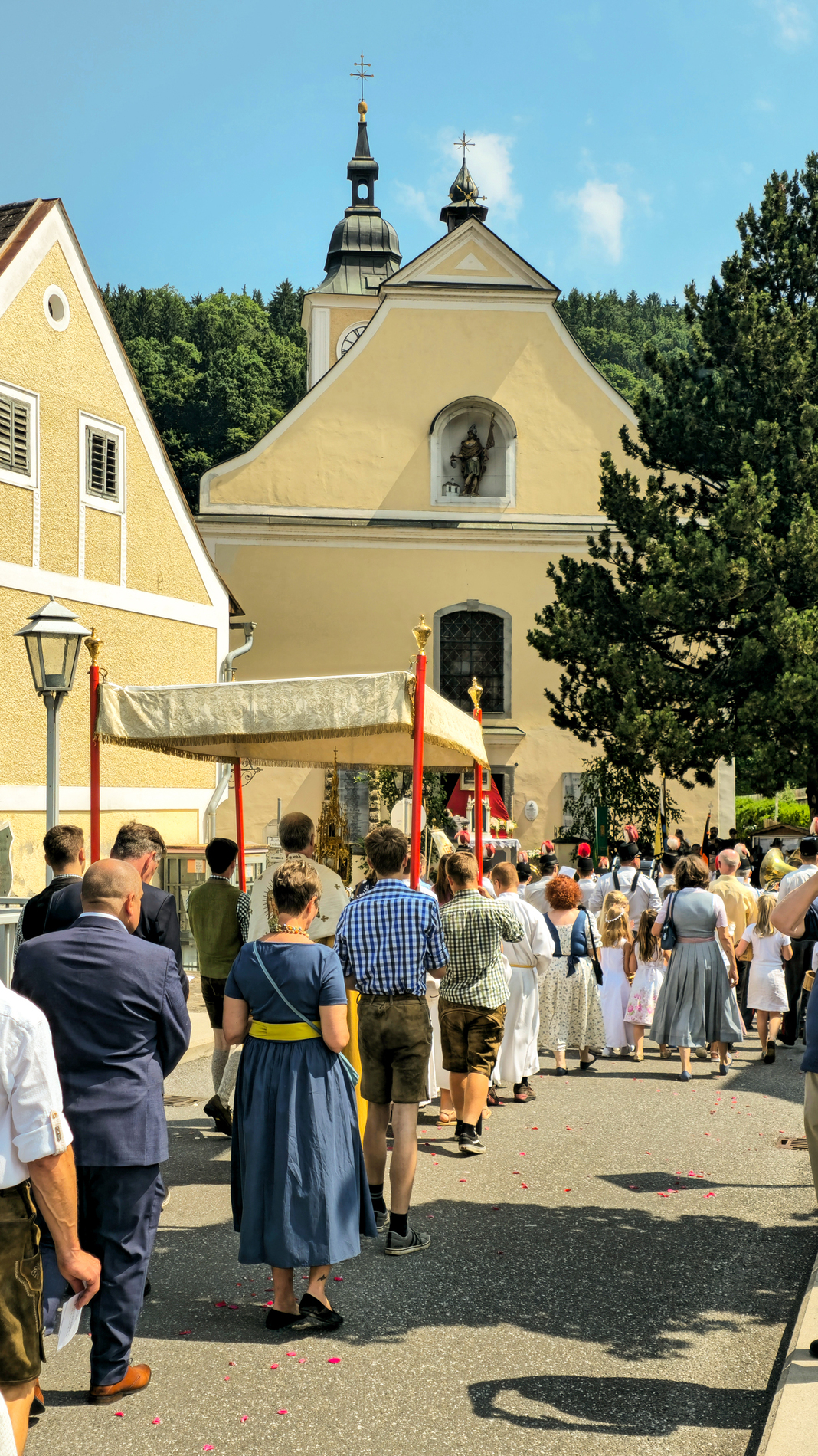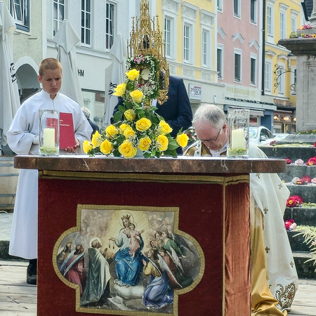 Bei strahlendem Sonnenschein zog die feierliche Prozession nach der Heiligen Messe von der Stadtpfarrkirche zunächst zur Mariensäule, weiter durch das Ybbstor zur Franziskuskirche und schließlich über die Zeller Hochbrücke zur Pfarrkirche Zell. Viele Erstkommunionkinder aus beiden Pfarren streuten unterwegs Blüten und verwandelten den Weg in ein buntes Blütenmeer. Den feierlichen Abschluss bildete die Segnung von Stadt und Land Waidhofen, bei der Bürgermeister Werner Krammer die Fürbitten vortrug.