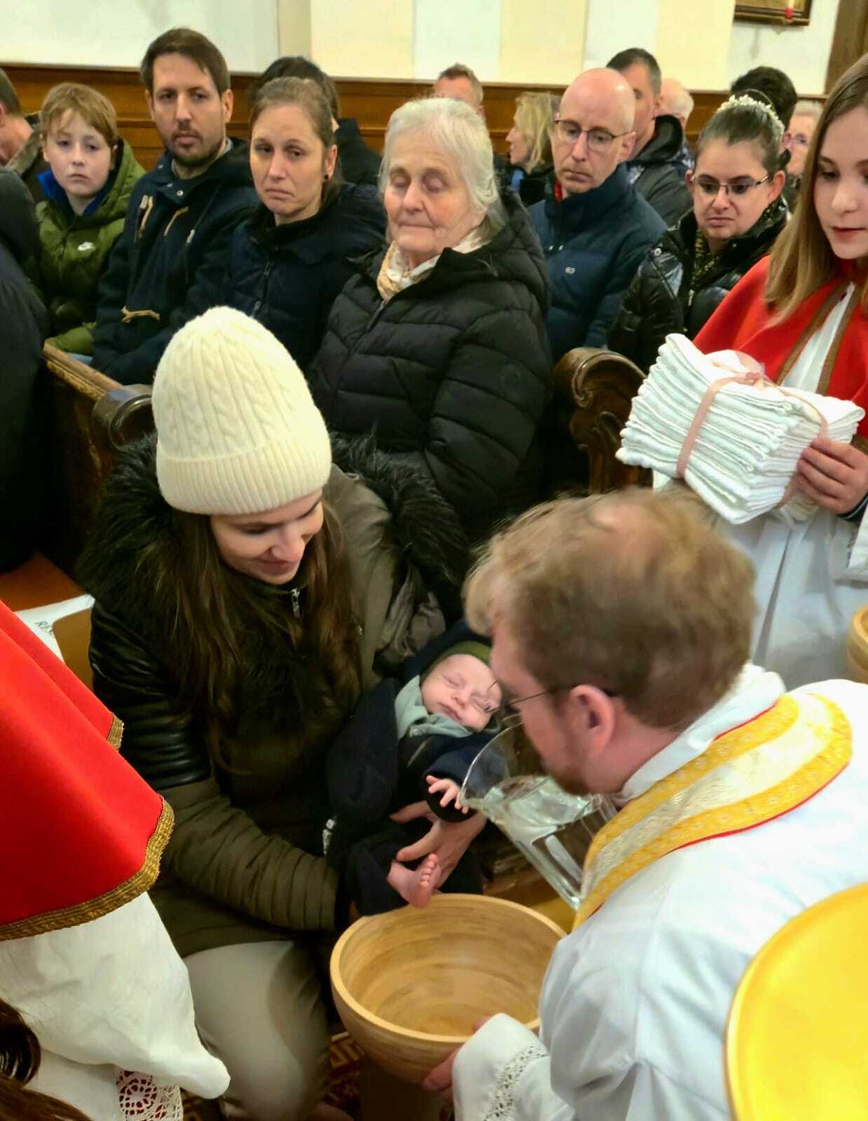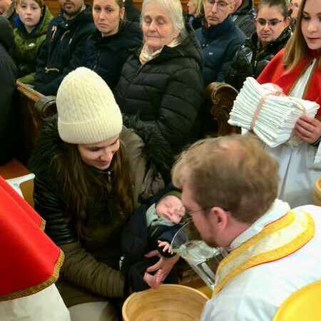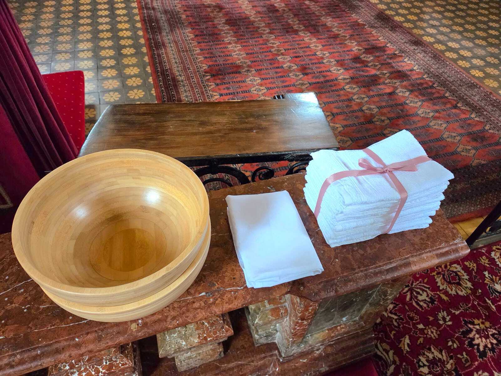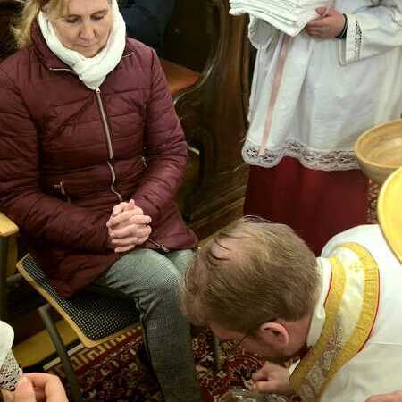 Um diese Botschaft auch sichtbar werden zu lassen, rief Kaplan Luca im Anschluss an die Predigt zwölf Personen aus den Bänken heraus, denen er die Füße wusch. Die Auswahl war bewusst vielfältig getroffen worden: Menschen unterschiedlichen Alters und aus verschiedenen Lebensbereichen sollten das ganze Volk Gottes repräsentieren.