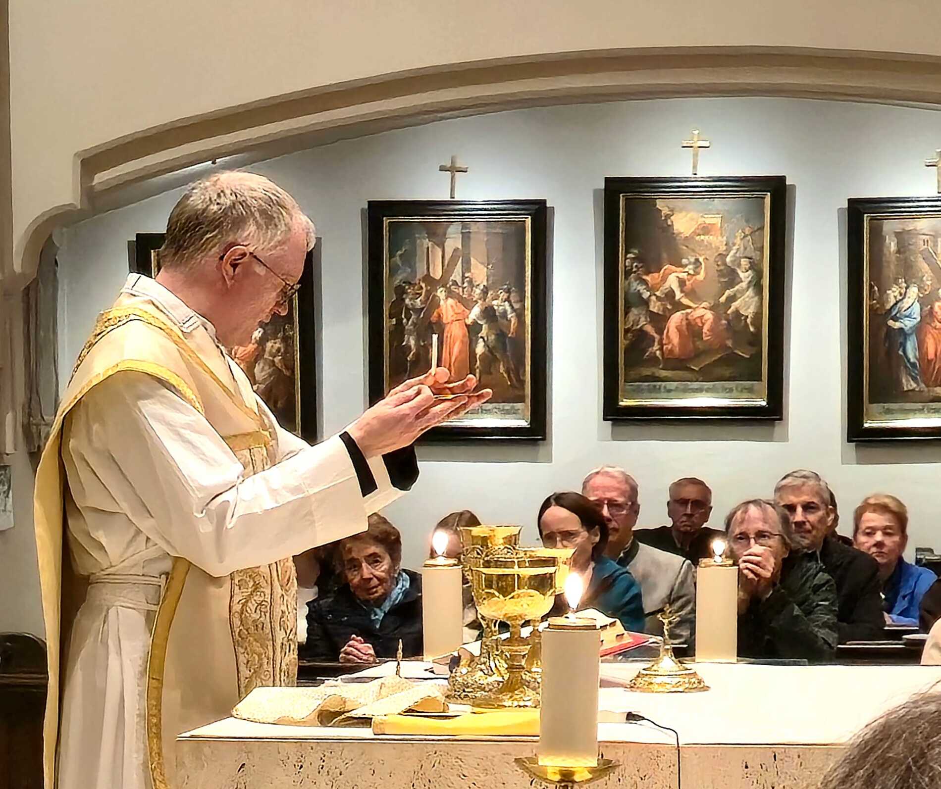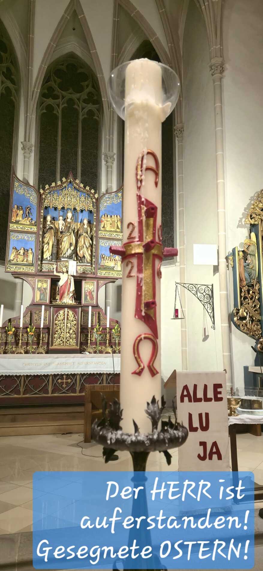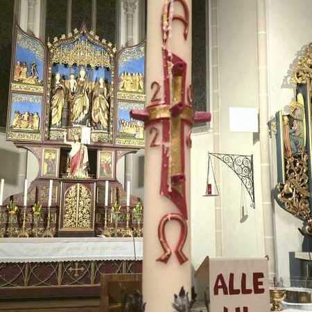 Das Hochamt am Abend des Ostersonntages wurde in festlicher Weise mit Chor und Orchester mit der Krönungsmesse von Mozart und Ausschnitten aus dem Messias von Händel musikalisch gestaltet. Chorleiter Thomas Schnabel brachte das musikalische Talent der Sänger/innen und Musiker/innen auf eindrucksvolle Weise zur Geltung und machte damit die Freude der Osterbotschaft auf besondere Weise spürbar.