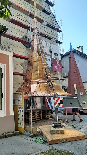 Wenn in der Stadt der Türme die Türme fliegen Aus Alt mach Neu - Austausch des Turmhelms der Franziskuskirche in Waidhofen/Ybbs. mehr: Wenn in der Stadt der Türme die Türme fliegen